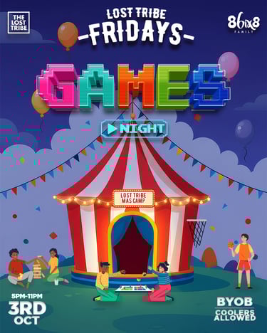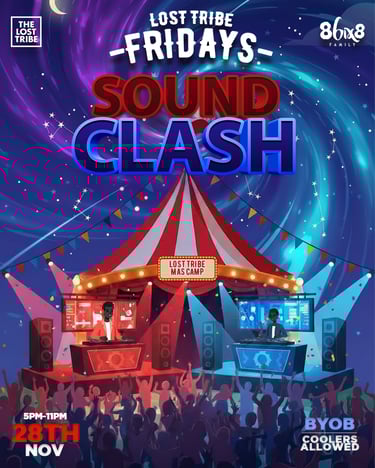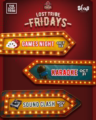 Every year Lost Tribe hosts a Friday get together for their after work crowd in the build up to Carnival. My task was to create a cohesive series of flyers in the theme of the Island Circus for Carnival 2026.